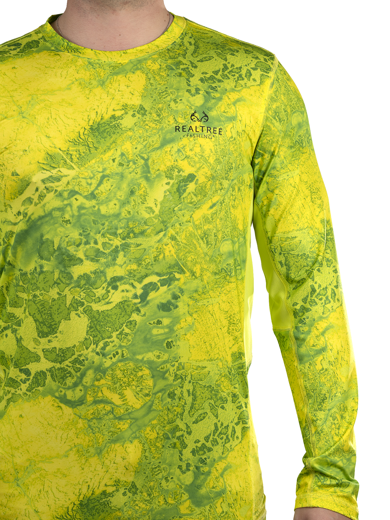 Realtree Wav3 Blue Yellow Long Sleeve Performance Fishing Shirt For Men Walmart Com
