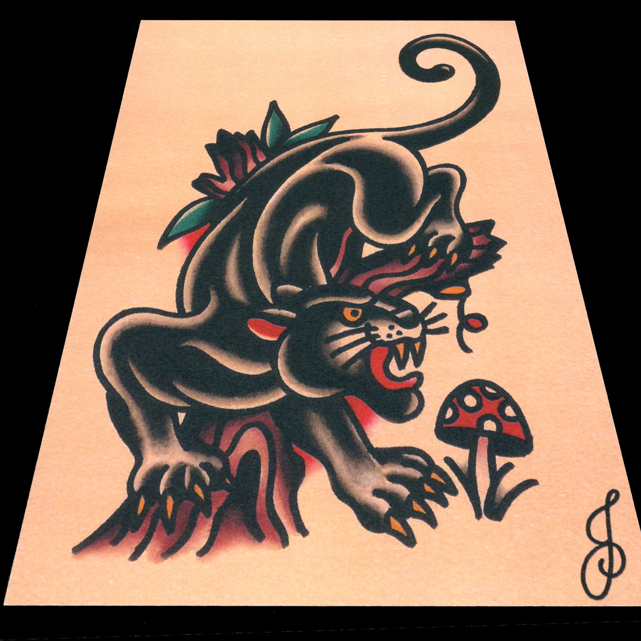 Panther With Mushroom Traditional Tattoo Flash Art Print 5x7 Etsy Australia