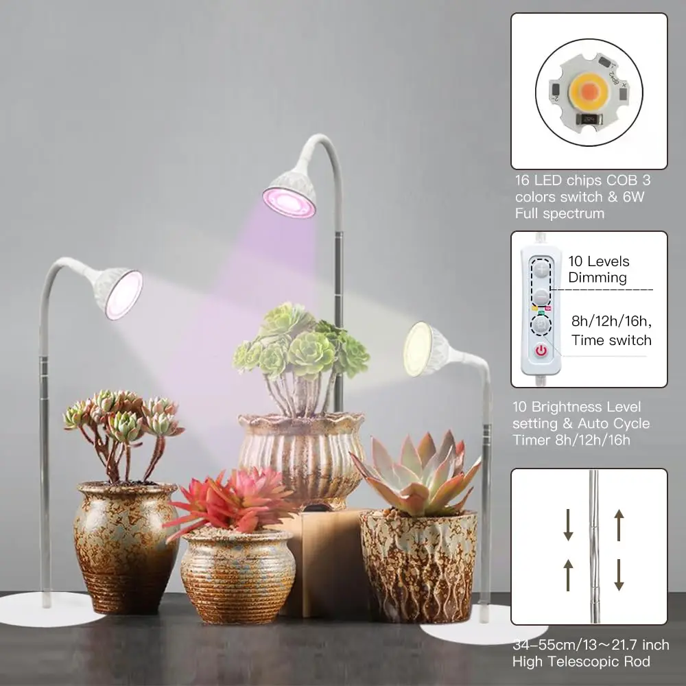 Grow Light Stand For Indoor Plants 16 Leds Full Spectrum Desk Growth Lamp With Timer 8h 12h 16h Height Adjustable 34 55cm